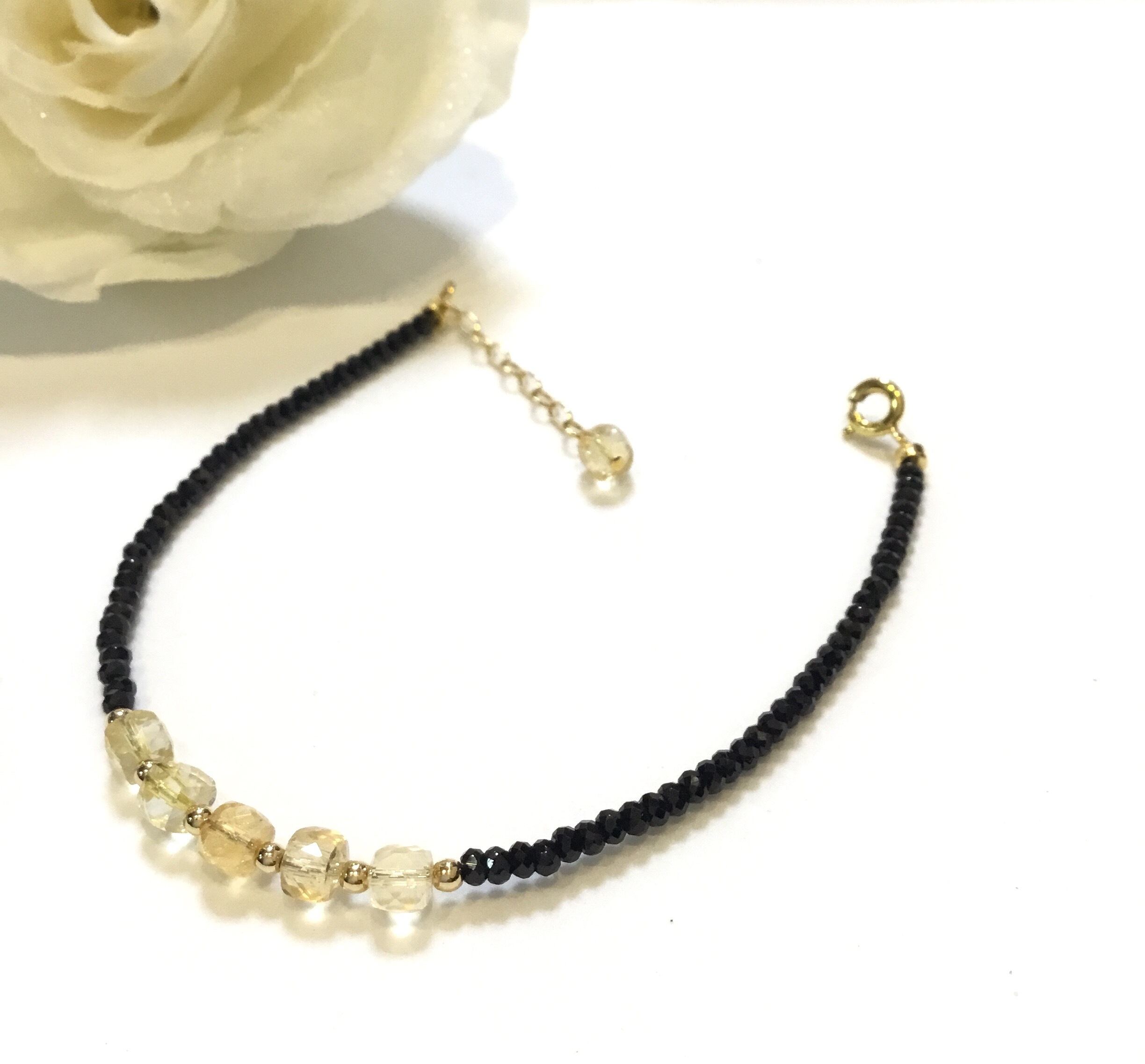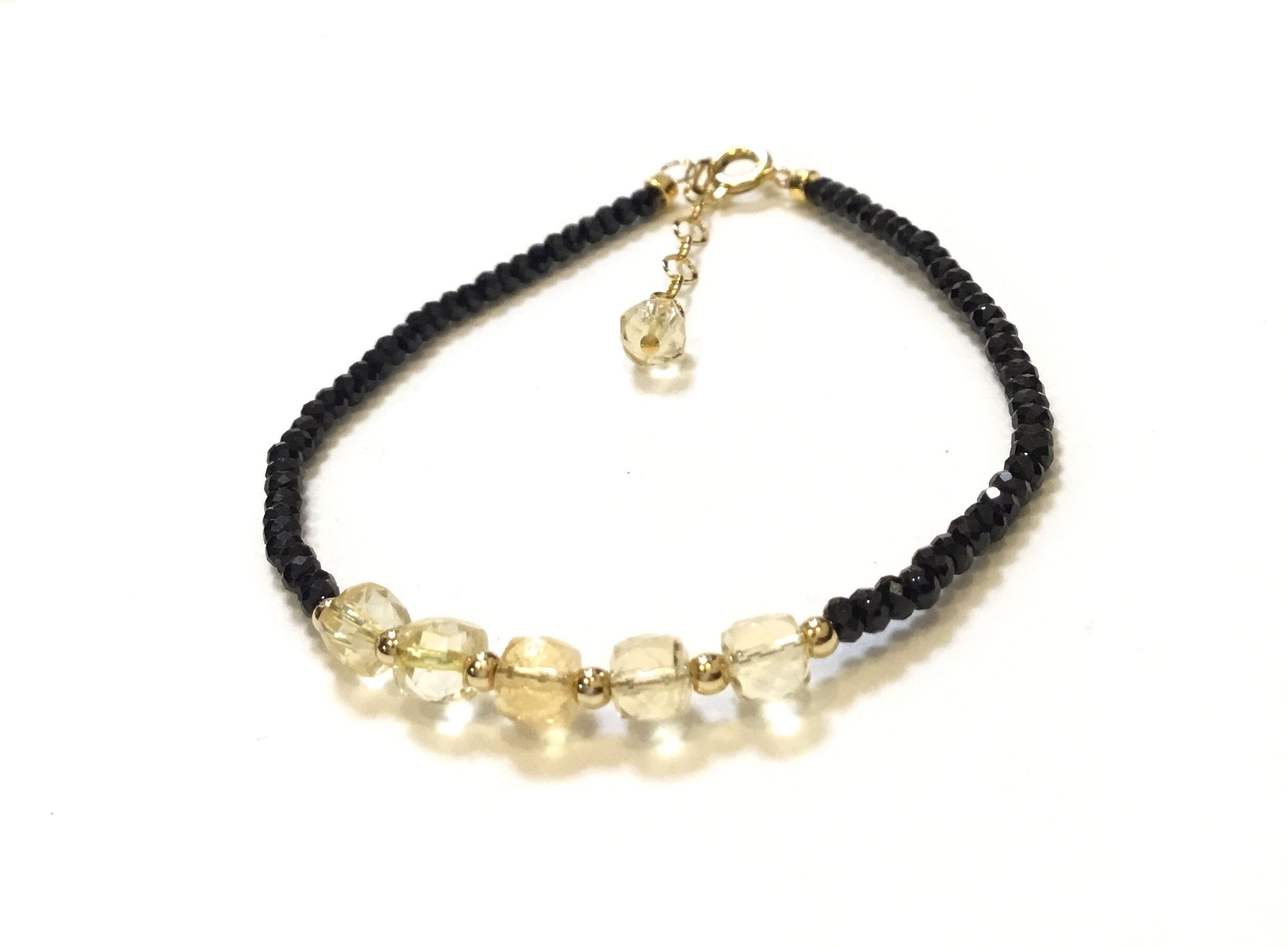 SV925(18KGP)シトリン&ブラックスピネルブレスレット