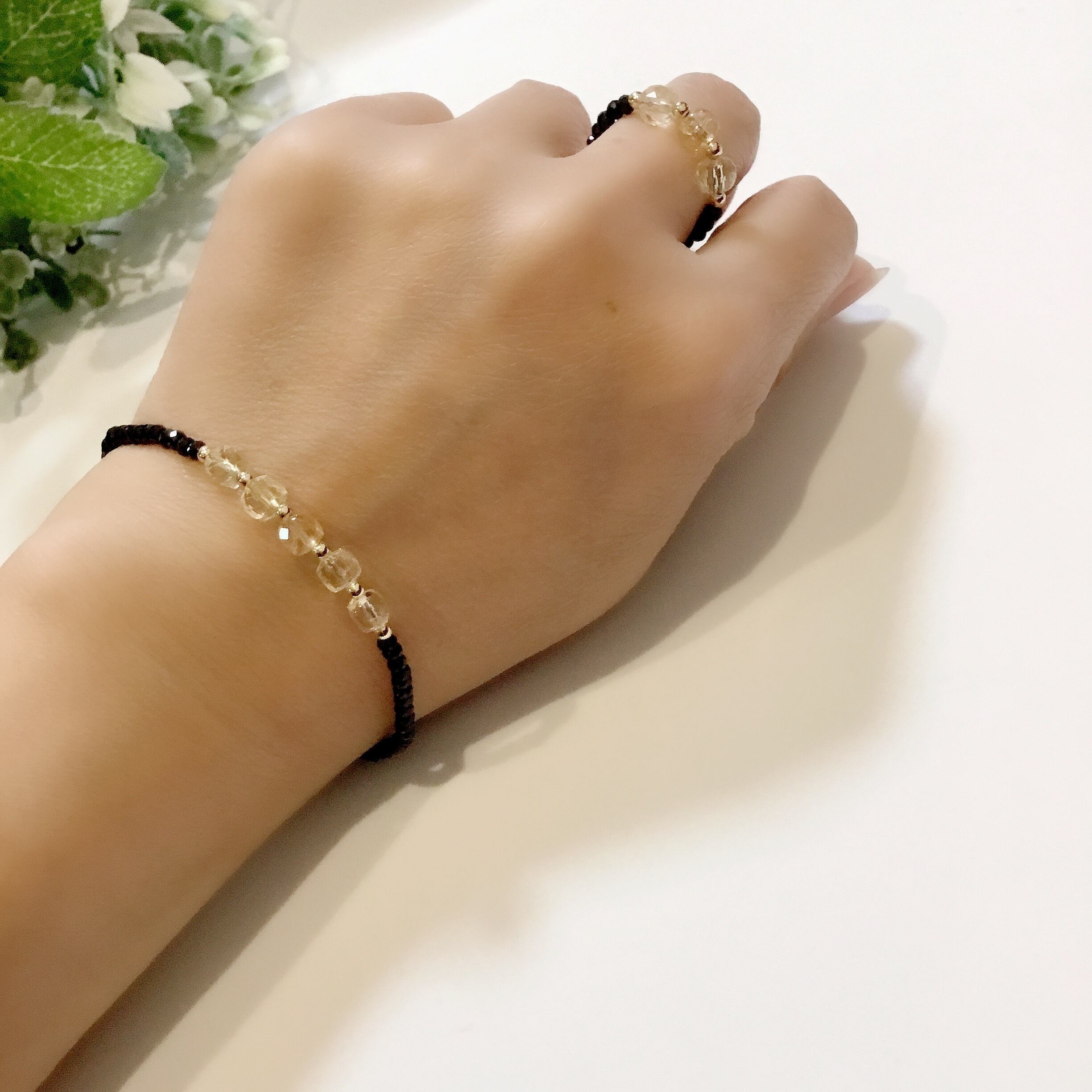 シトリンの明るい元気をもらえそうな色と、ブラックスピネルの漆黒の艶やかさは