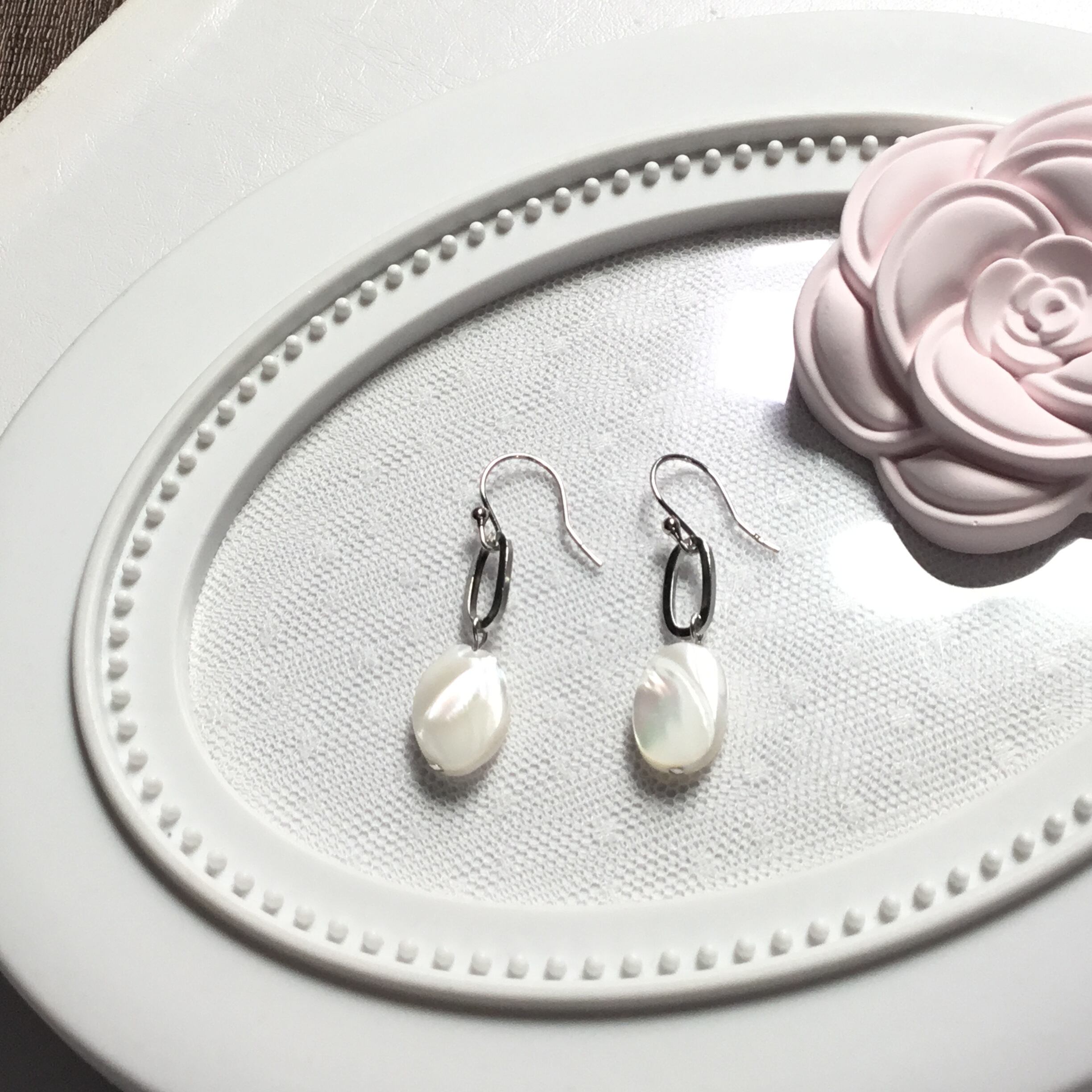 ホワイトのマザーオブパールを使用しており、自然の美しさが詰まったアクセサリーです。